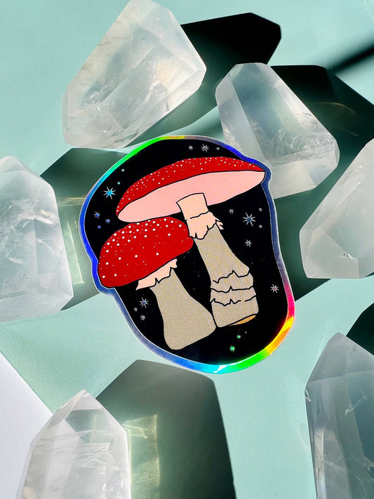 Celestial Mushrooms Holographic Sticker